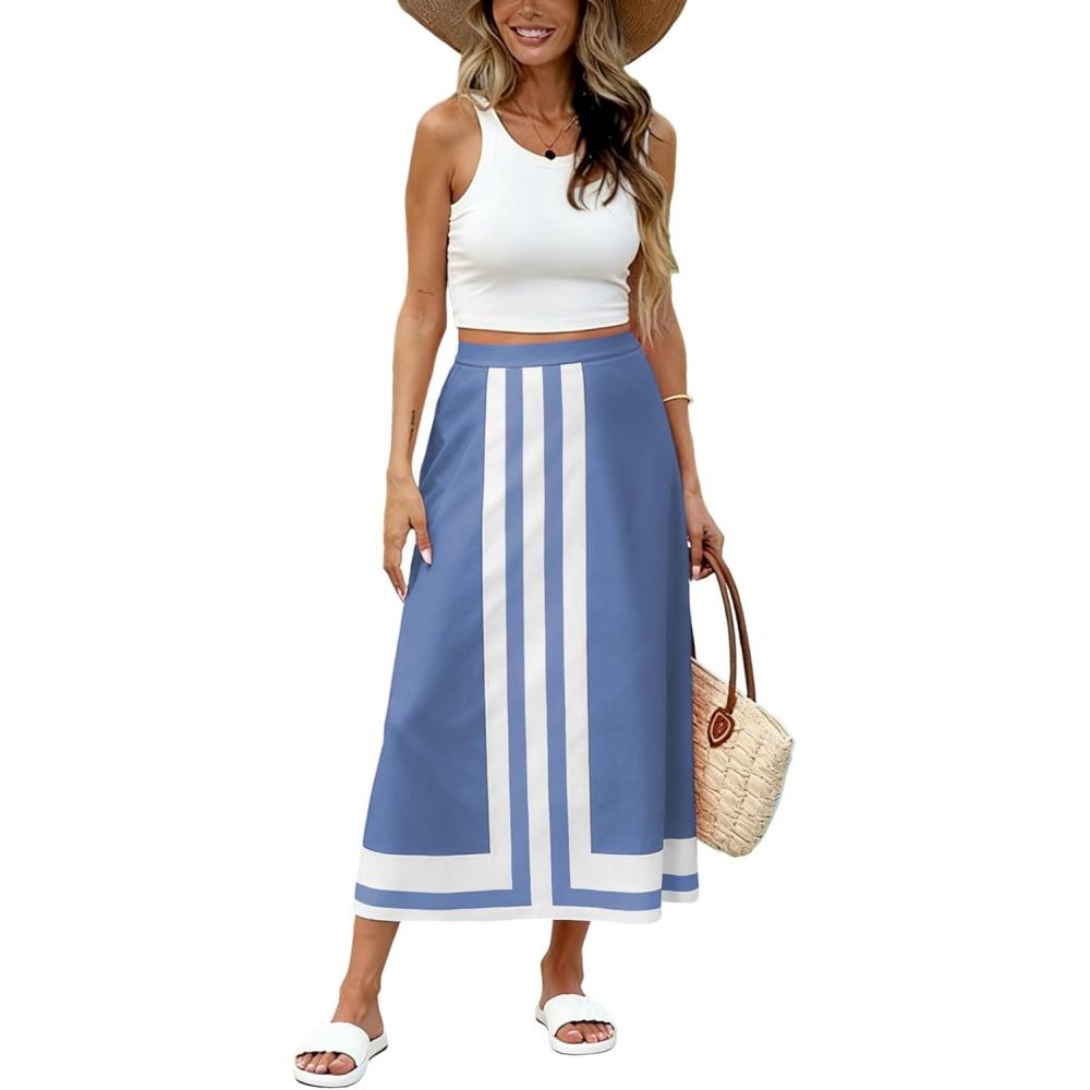 Ailoqing 2026 Women Bohemian Floral Skirt Summer Casual Color Block Maxi Beach Vocation Skirts Outfits(Blue)