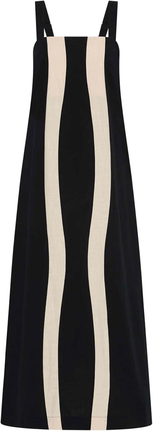 Ailoqing 2026 Women Boho Floral Dress Summer Casual Color Block Maxi Beach Vocation Overall Dresses Coverups(Black)