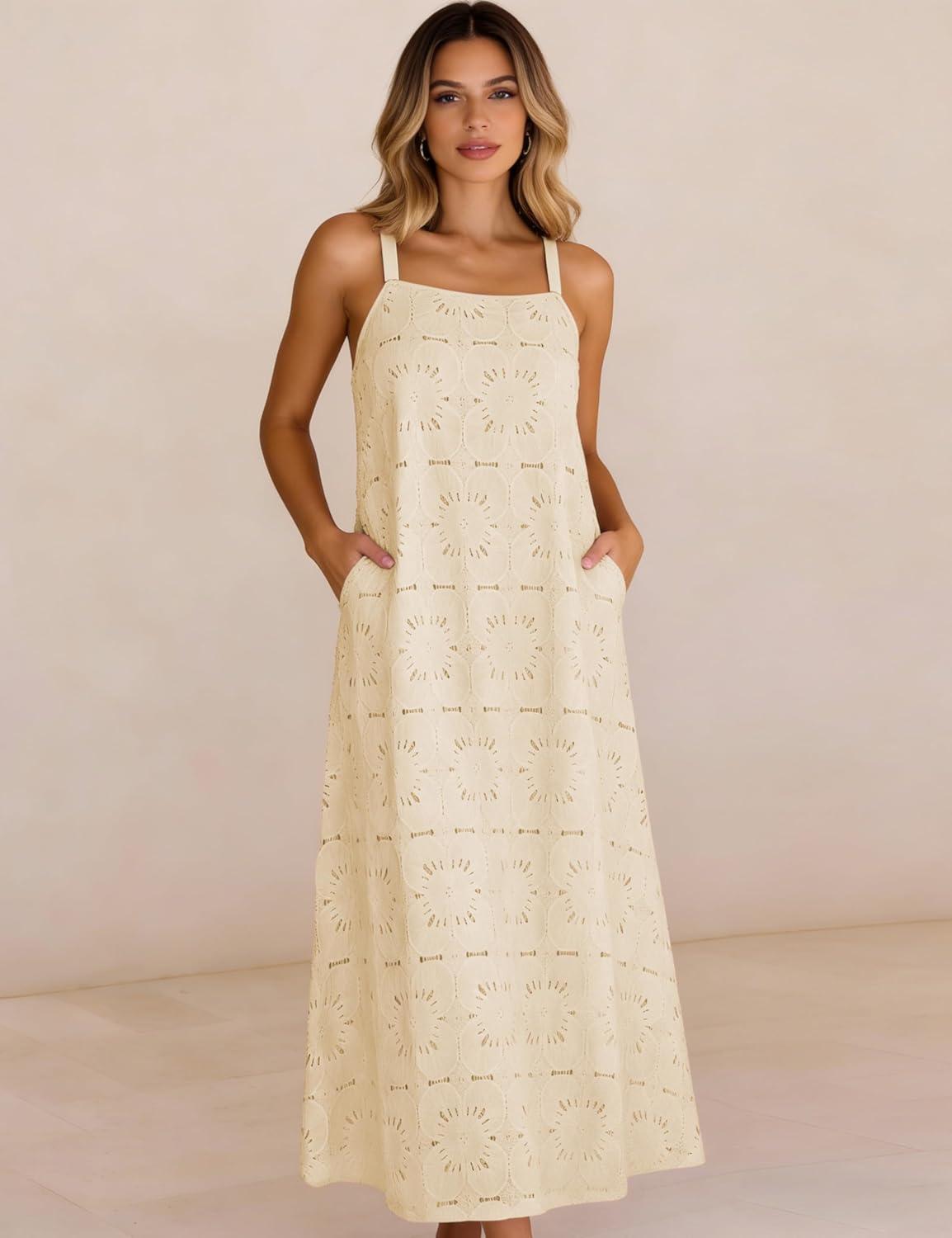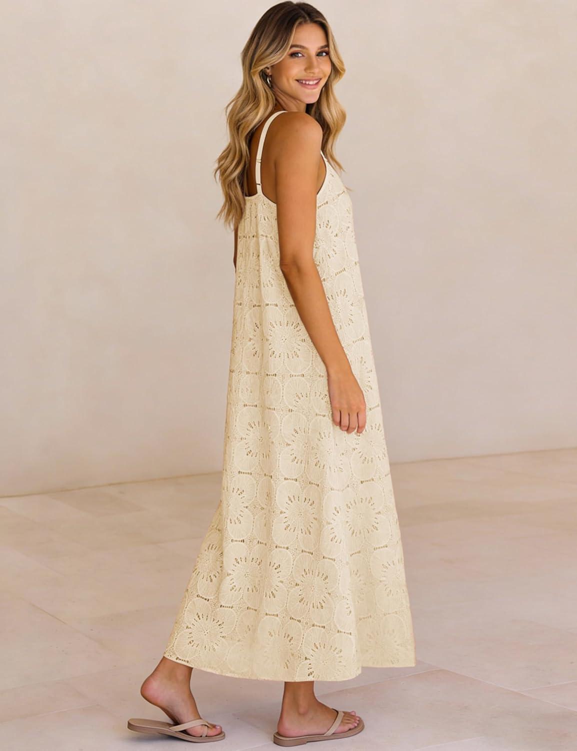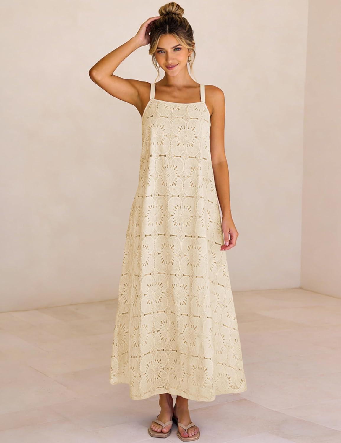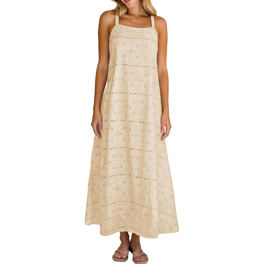Ailoqing 2026 Womens Summer Boho Sundress Casual Sleeveless Floral Lace Beach Vocation Maxi Dress(Apricot)