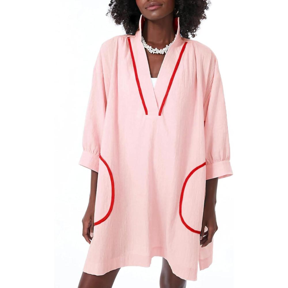 Ailoqing Swimsuit Coverup Womens V Neck 3/4 Sleeve Casual Shirt Dress with Pockets(Pink)