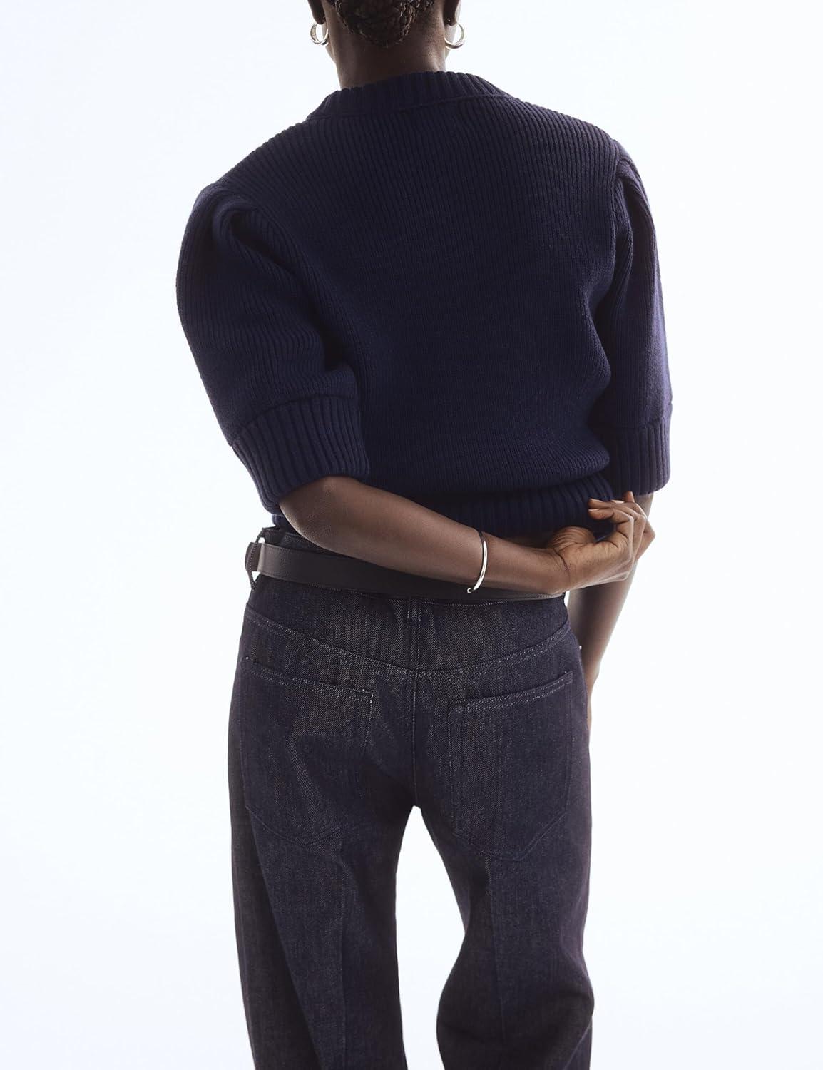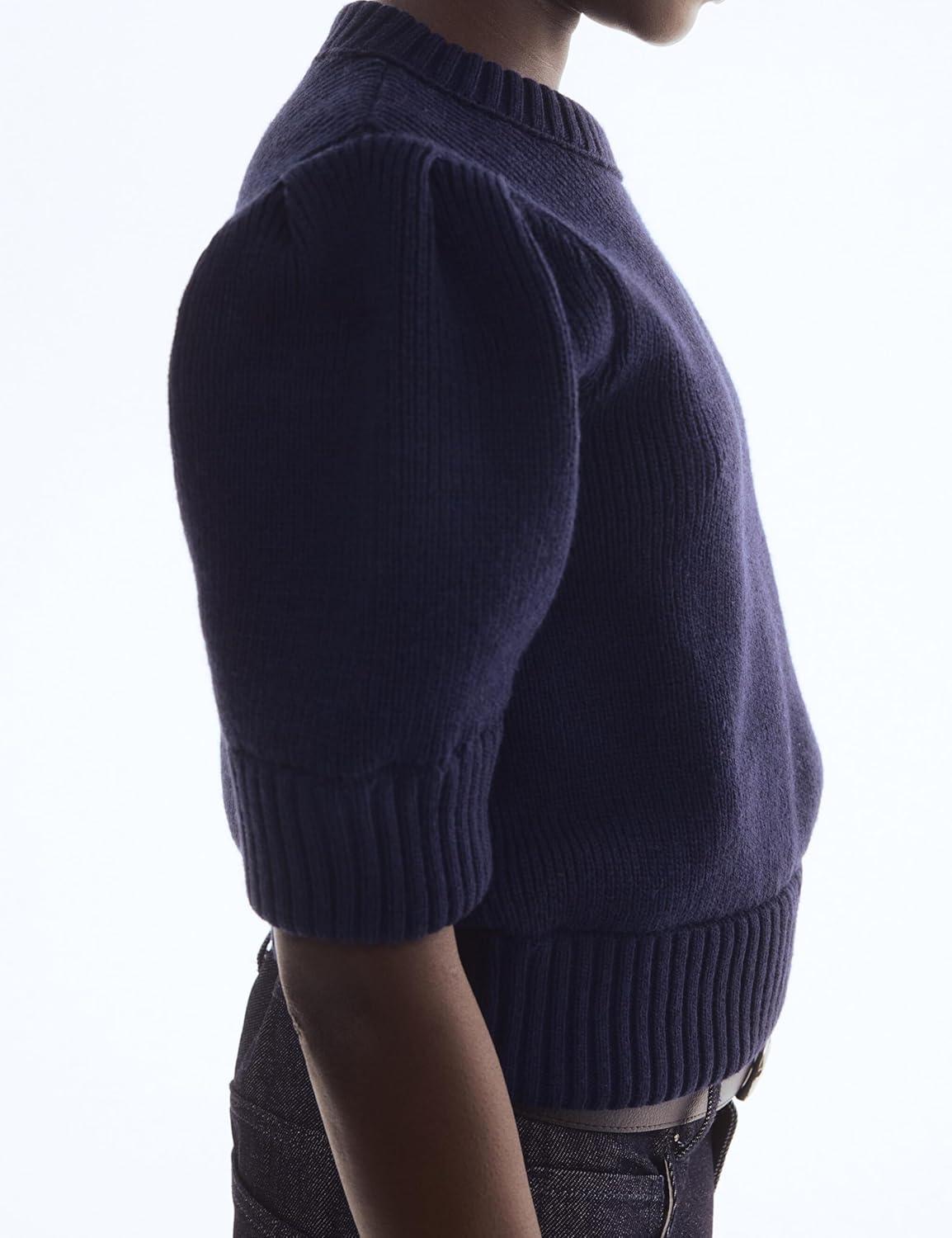 Ailoqing Casual Women's Short Sleeves Pullover Sweater Lightweight Crewneck Cropped Knit Jumper Tops(Navy)