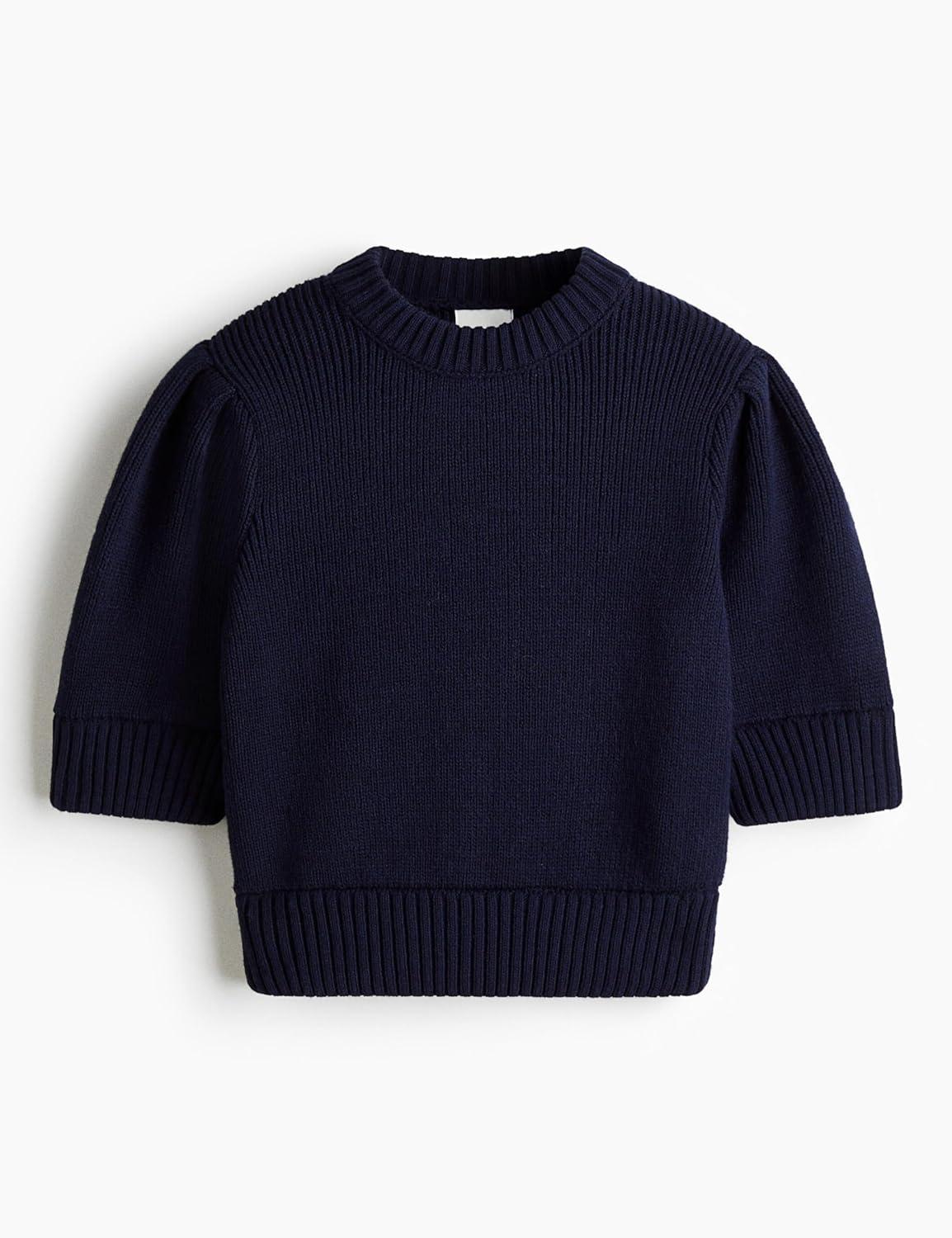 imageAiloqing Casual Womens Short Sleeves Pullover Sweater Lightweight Crewneck Cropped Knit Jumper TopsNavy